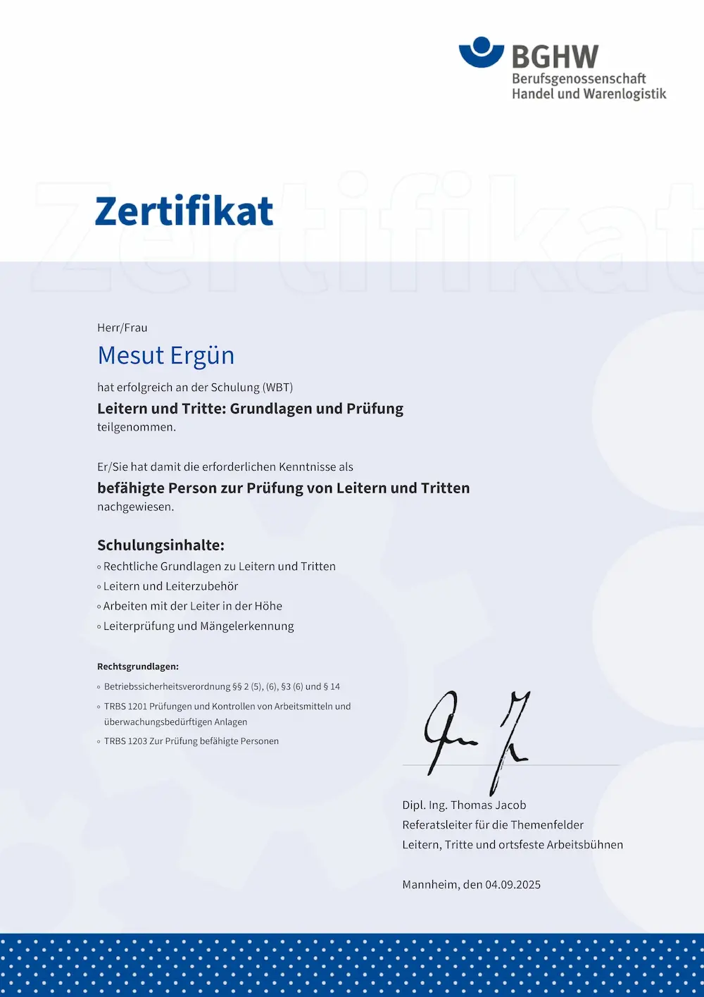 Zertifikat Leiterschulung   BGHW