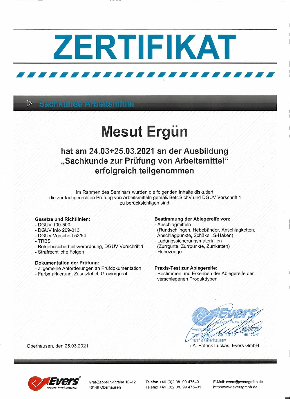 Die Prüfungen basieren auf nachweisbaren Qualifikationen. Eine Auswahl der Zertifikate ist hier zu sehen.